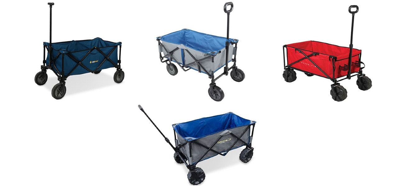 | Outdoor Connection Off-Road Hauler | OZtrail Collapsible Camp Wagon | Wanderer Rugged Cart Beach Wagon | Kmart Foldable Beach Trolley |