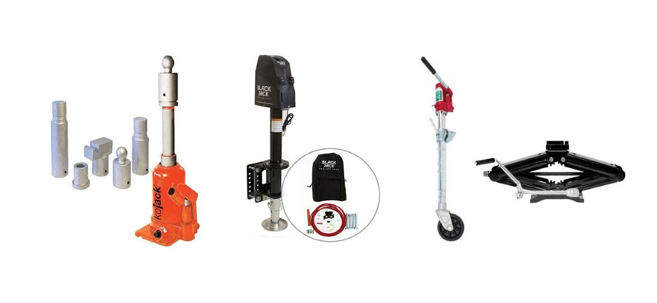 | Explore Caravan Scissor Jack | KoJack 4T Jack Kit with Higher Extension | Trail-A-Mate Hydraulic Jockey Wheel & Jack | Black Jack Electric Trailer Jack with Clamp & Harness Kit |