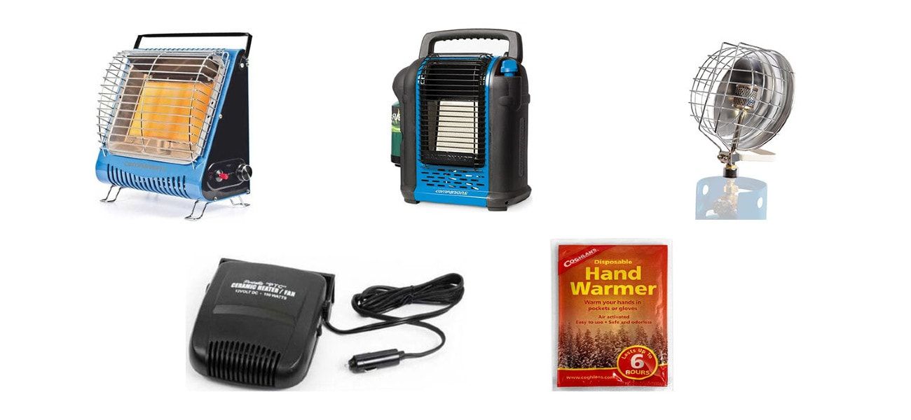 Gas burners are great at being instant and hot heaters, but they can only be used outside. For those looking for some extra heat inside their tent if the sleeping bags are not good enough, then an electric heater like the Camec 12V Mini fan heater may be what you are looking for.